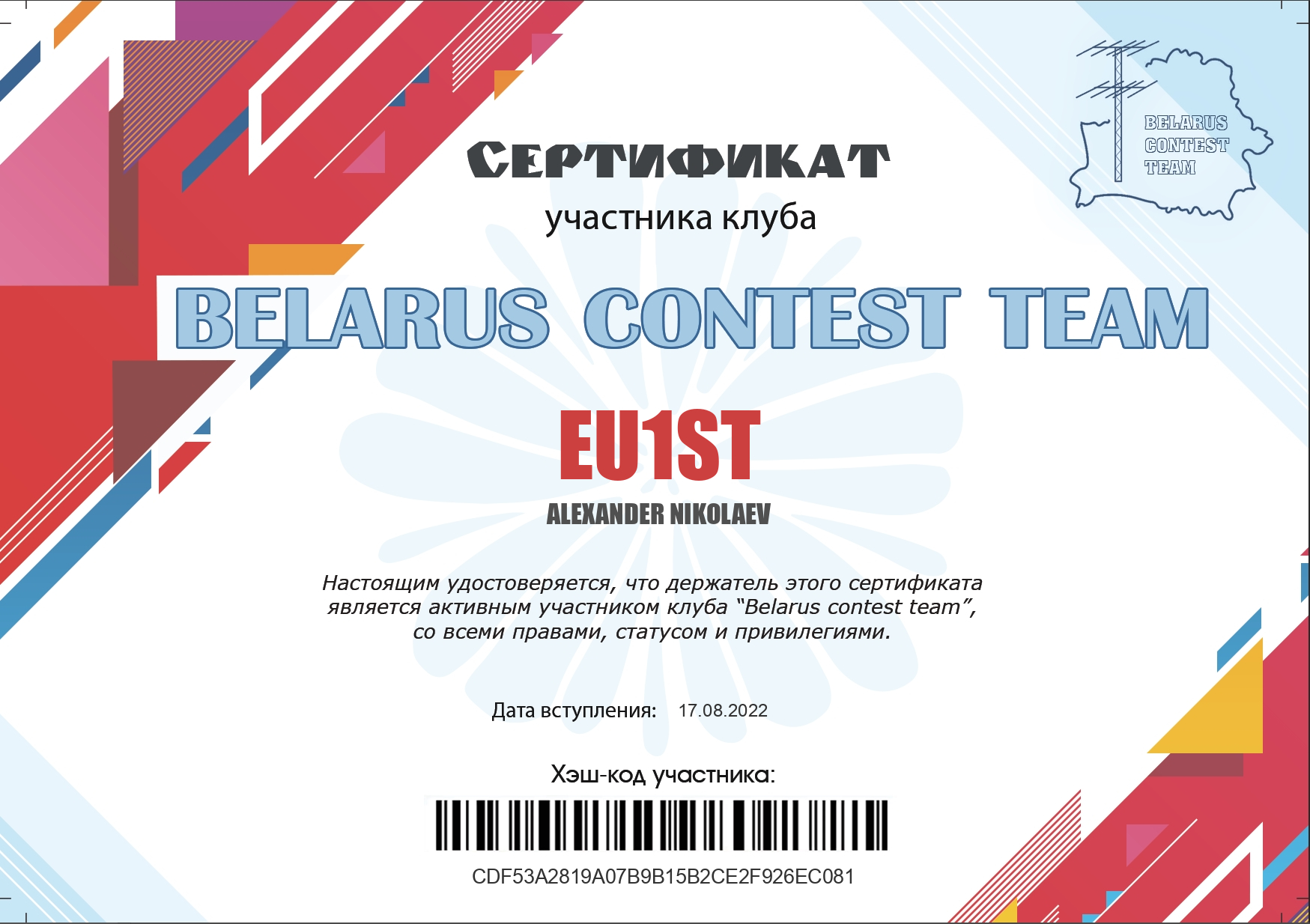 Kарточка участника клуба "BCT"