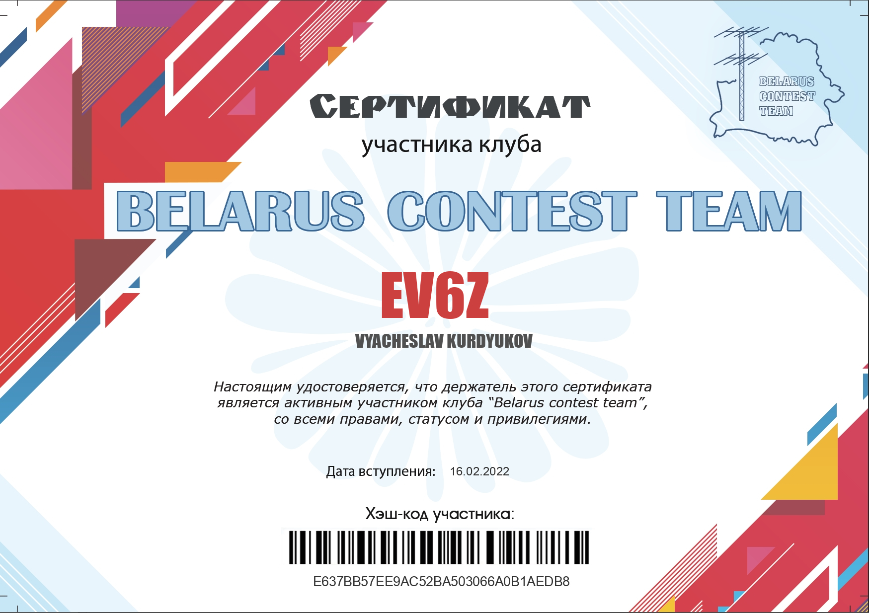 Kарточка участника клуба "BCT"